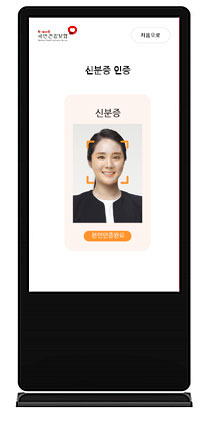 키오스크에는 본인인증 관련하여 신분증(면허증)인증 시스템, 휴대전화인증 시스템, 생체정보(지문) 시스템, 생체정보(얼굴) 시스템, 건강보험QR코드 인증 시스템으로 구성된 5가지 인증 서비스가 탑재되어 있습니다.